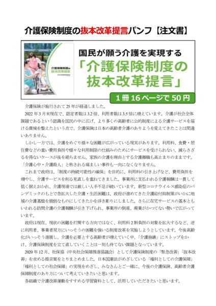 2025年7月17日 介護保険制度の抜本改革提言パンフ注文書